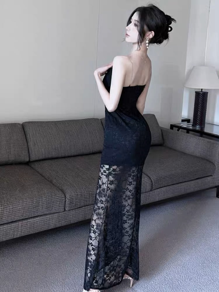 Look chic and stylish in the Chloe Lace Dress. Made from a combination of lace, cotton and polyester, this black maxi dress has a slim mermaid silhouette. The dress is lightly padded for a fitted look and feel. Ideal for evening events and formal occasions.